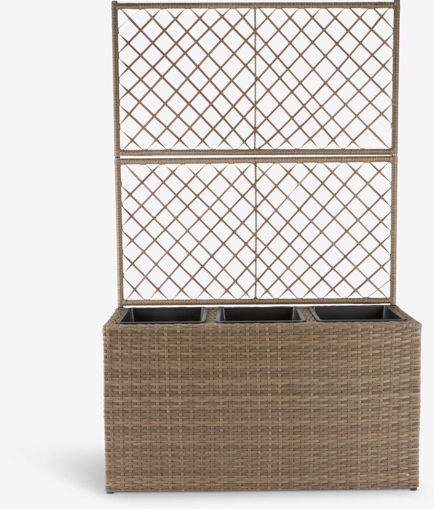 Plantekasse med espalier, laget av petan og galvanisert stål. Ideell for å lage et grønt gjerde rundt terrassen eller for å dele opp uterommet. Espalieret gir støtte til klatreplanter, og når det er dekket gir det en vakker og dekorativ effekt. Et dreneringshull kan enkelt lages for å sikre at overflødig vann kan renne vekk. B30 x L83 x H130 cm