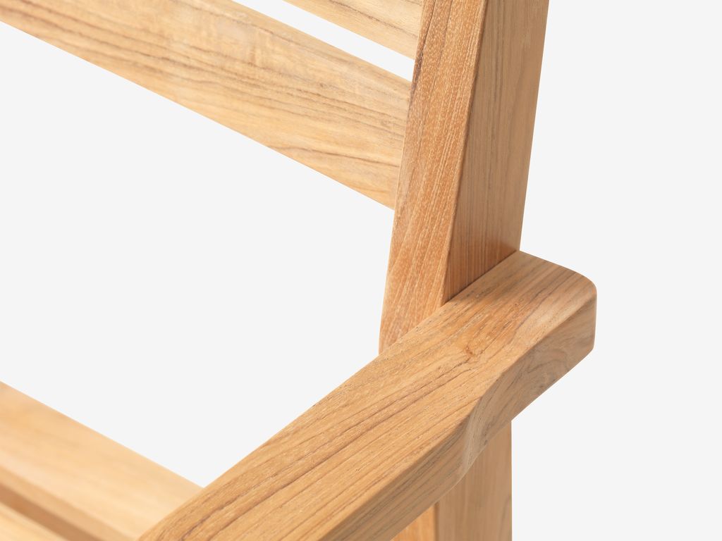 Hagestol i massiv FSC®-teak. Teak er en elegant og slitesterk tresort med høyt innhold av naturlig olje som hindrer fukt i å trekke inn i treet. Over tid utvikler teak en sølvgrå patina.