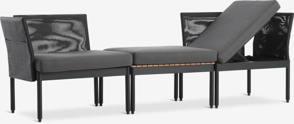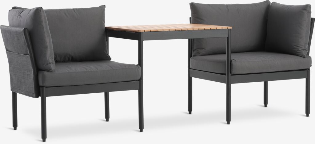 • 2-seters loungesett: 2 hjørnemoduler og 1 bordmodul