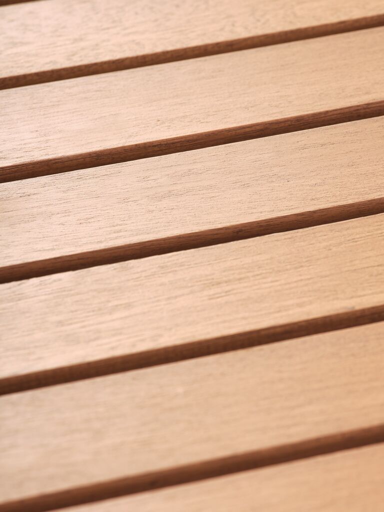 Loungebordet har en bordplate i oljet FSC®-hardtre. Treverket gir naturlig holdbarhet, lang levetid og skjønnhet. Det er behandlet med olje for å beskytte det og fremheve den naturlige fargen. Regelmessig oljebehandling av treverket anbefales for å bevare fargen og beskytte det mot fuktighet.
