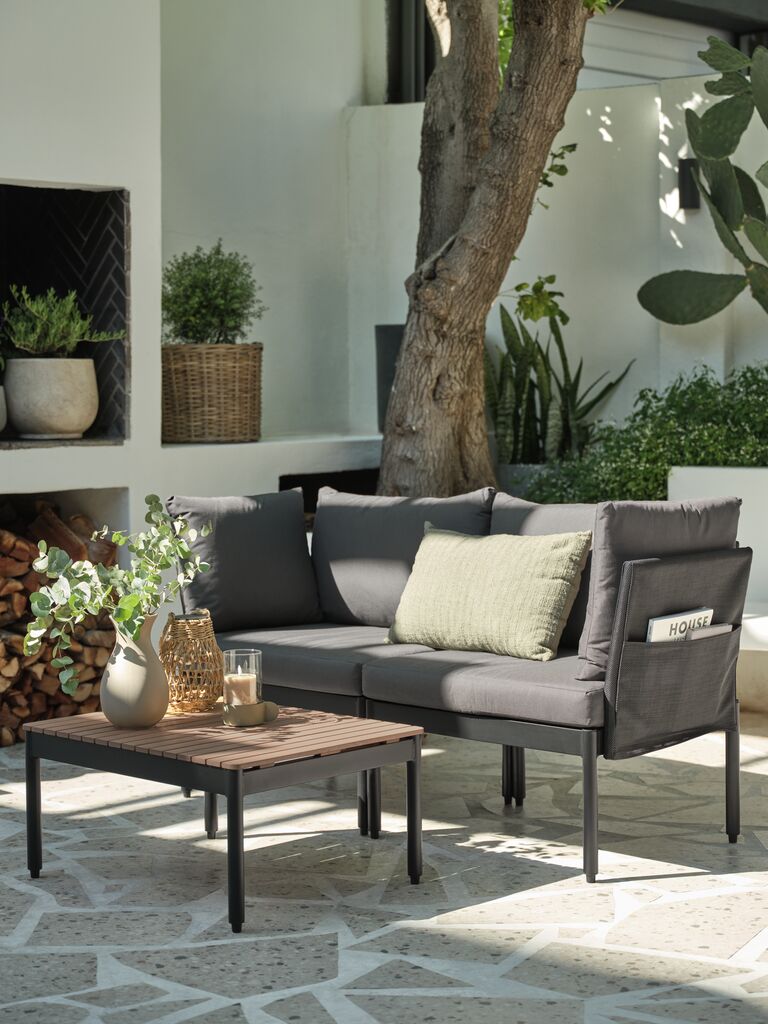 BJORLI modulloungesett gir deg fleksibiliteten til å tilpasse og optimalisere uteplassen din. Dette svarte settet består av 2 sittemoduler med komfortable puter og 1 matchende bordmodul med bordplate i FSC®-sertifisert hardtre. Du kan enkelt omorganisere modulene i ulike kombinasjoner som passer dine behov.