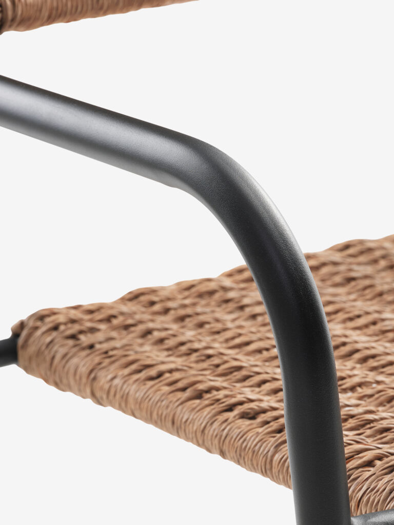 | Materiale | Stell: Stål, Bordplate: Kunsttre er et vedlikeholdsfritt syntetisk materiale med en naturlig utseende trestruktur. Det er laget av plast, som polystyren, som gir et slitesterkt og værbestandig materiale. Kunsttre er UV-beskyttet, det sikrer en fargebestandig overflate. |