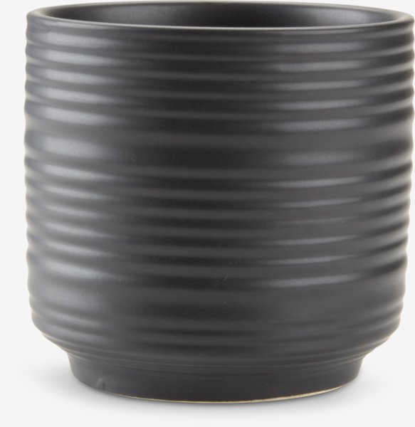 Svart blomsterpotte laget av keramikk i et enkelt og moderne design. Ø11 x H11 cm
