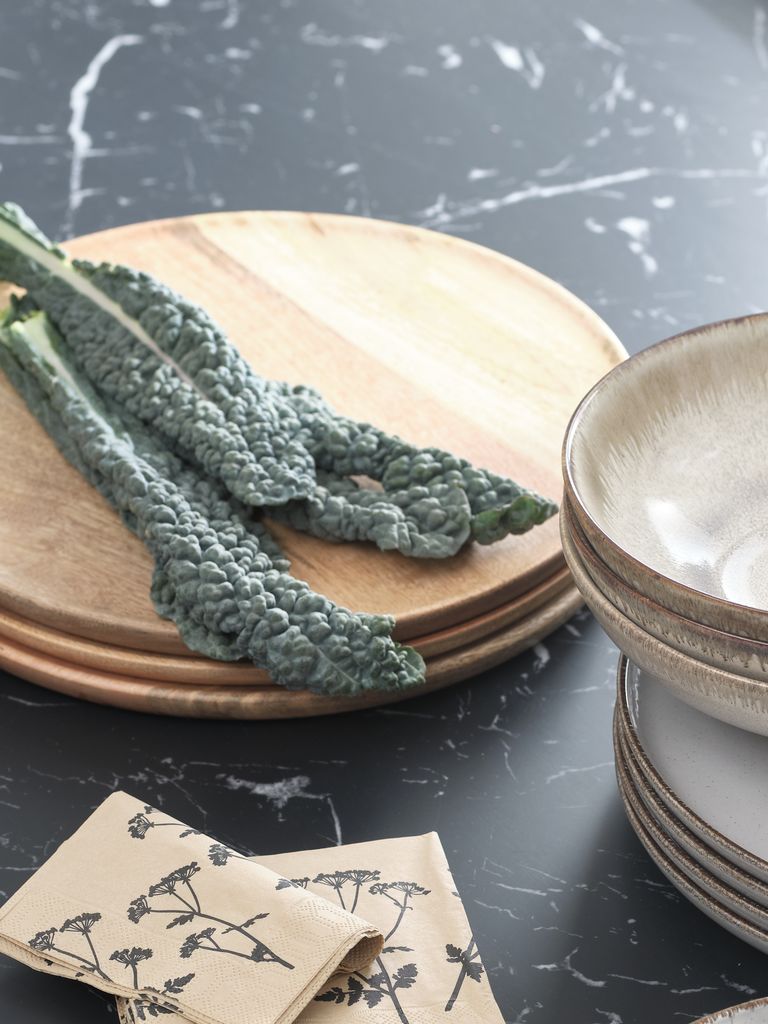 Dekorativt brett laget av mangotre. Brettet har en jevn, rund design som er perfekt for å vise frem lys, dekorasjoner, eller som en stilfull oppbevaringsplass for nøkler og småting. Hvert brett har et unikt utseende på grunn av de naturlige variasjonene i treet. Ø30 cm