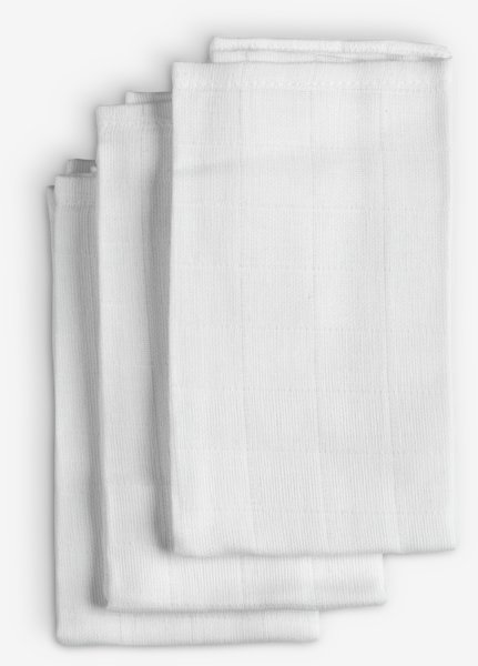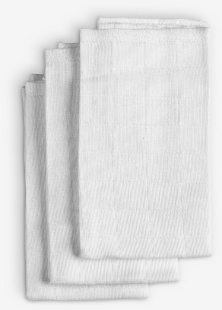 Pakke med 3 hvite kluter i bomull. Svært absorberende og ideelle for rengjøringsoppgaver i hjemmet, polering eller tørking. Kan vaskes ved 95°C. B40 x L50 cm