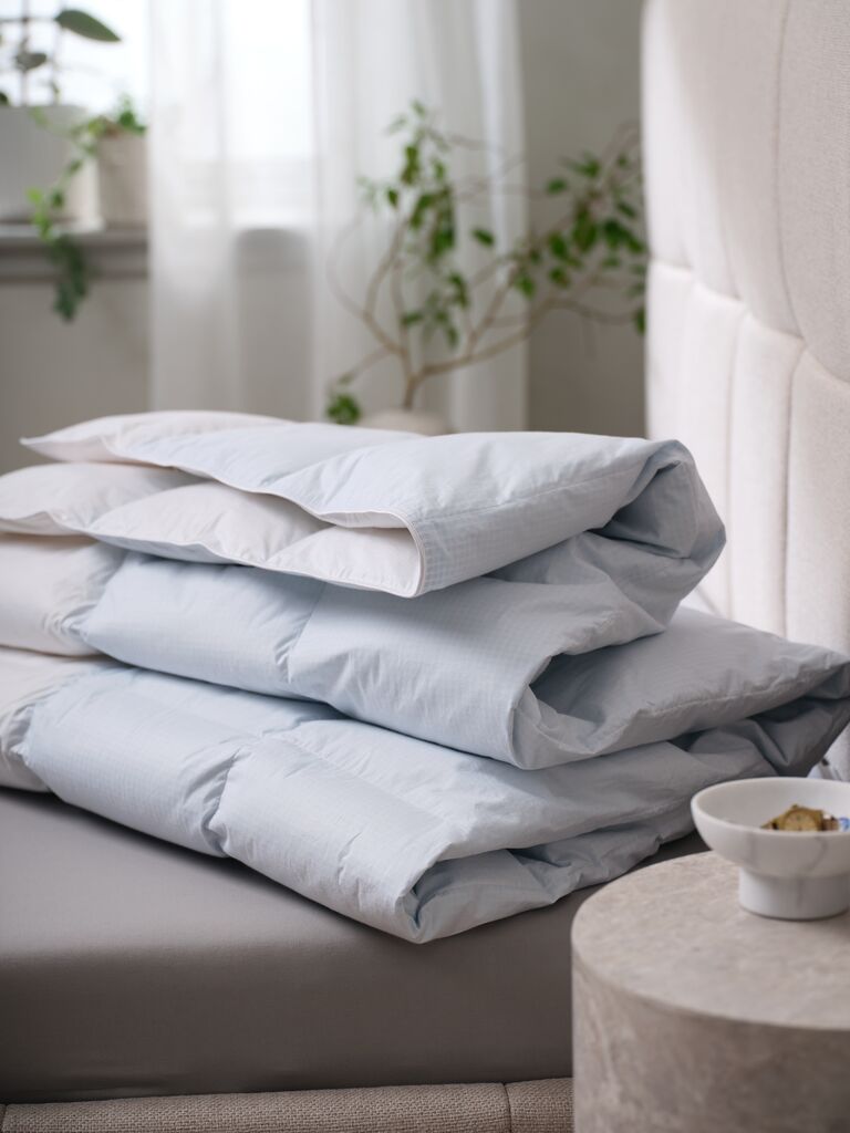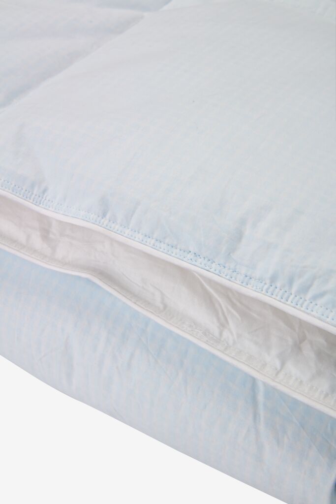 | Egenskaper | Kjølende og temperaturregulerende stoff på den ene siden, Varer merket med DOWNPASS inneholder dun og fjær av høy kvalitet fra strengt kontrollerte produsenter med høy dyrevelferd. Produkter merket med Downafresh® inneholder dun og fjær som lever opp til de europeiske standardene for hygiene og renhet. Det betyr at dun og fjær rnegjøres grundig med vann og varmebehandling før bruk. I tillegg til dette betyr Downafresh® greenLine-merket at dun og fjær er behandlet etter økologiske kriterier. Dyner og puter som er merket med NOMITE, har trekk som er særdeles tettvevd. Det hjelper med å redusere gjennomtrengningen av støvmidd. |