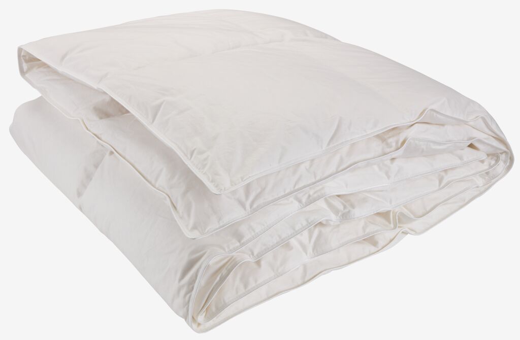 Allergivennlig dyne 135x220 cm med 90% hvite europeiske moskusandedun/10% moskusandefjær, 750 g. Moskusandedun minner om de eksklusive ederdunene, og har en enestående isoleringsevne. Mykt trekk i 100% bomullscambric. Det tettvevde trekket hjelper med å redusere gjennomtrengningen av støvmidd. Kassettsydd med kanalvegger som isolerer uten kuldebroer. Bæreevne 725. Vask 60°C. Inkl. oppbevaringsveske.