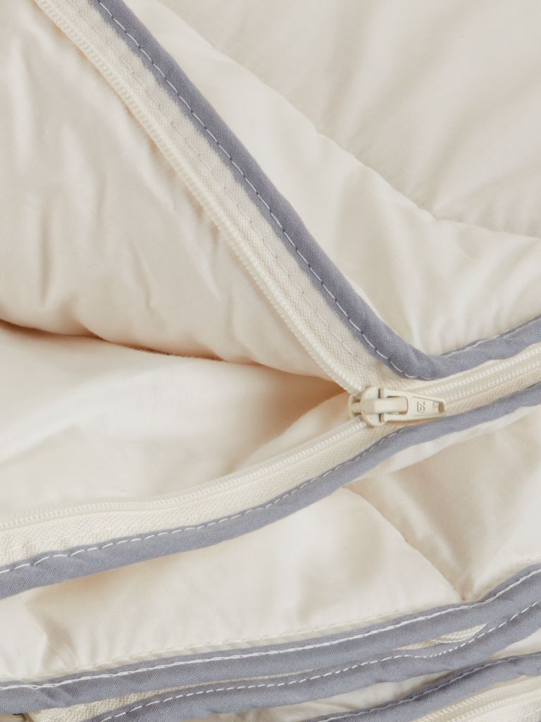 Flott dyne i luftig og naturlig materiale. Bare å velge tykkelse etter smak. En tynnere dyne til sommeren med 700 g. Den andre dynen har nesten dobbelt med fyll. Til kalle vintrar er det bare å sette begge sammen med glidelås.