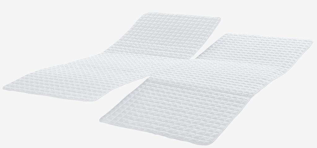 Madrassbeskytter 180x200 cm til dobbel, regulerbar seng med praktisk splitt i hode- og fotende. Med denne madrassbeskytteren unngår du mellomrommet mellom sengene, og splitten gjør at hode- og fotendene kan beveges uavhengig av hverandre. Kan kokevaskes. Myk, tykk quilting av silikoniserte hulfiber (100% resirkulert). Elastiske hjørnestropper.