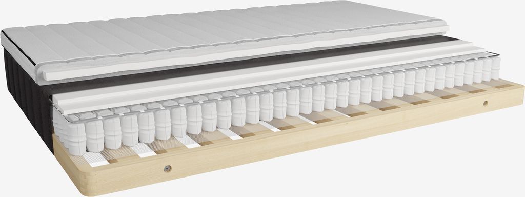 Fjærlag 1 (øverst) | 12,5 cm Hver enkelt pocket-fjær er beskyttet av en stoffpose som gjør madrassen fleksibel, øker levetiden og reduserer lyd. |