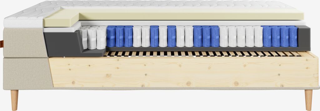 | Komfortlag 1 (øverst) | 25 mm polyeterskum 30 kg/m³ |