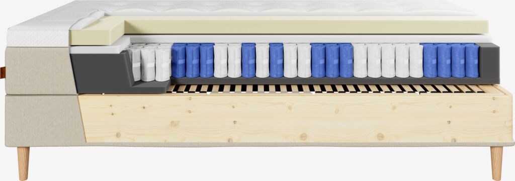 | Komfortlag 1 (øverst) | 25 mm polyeterskum 30 kg/m³ |