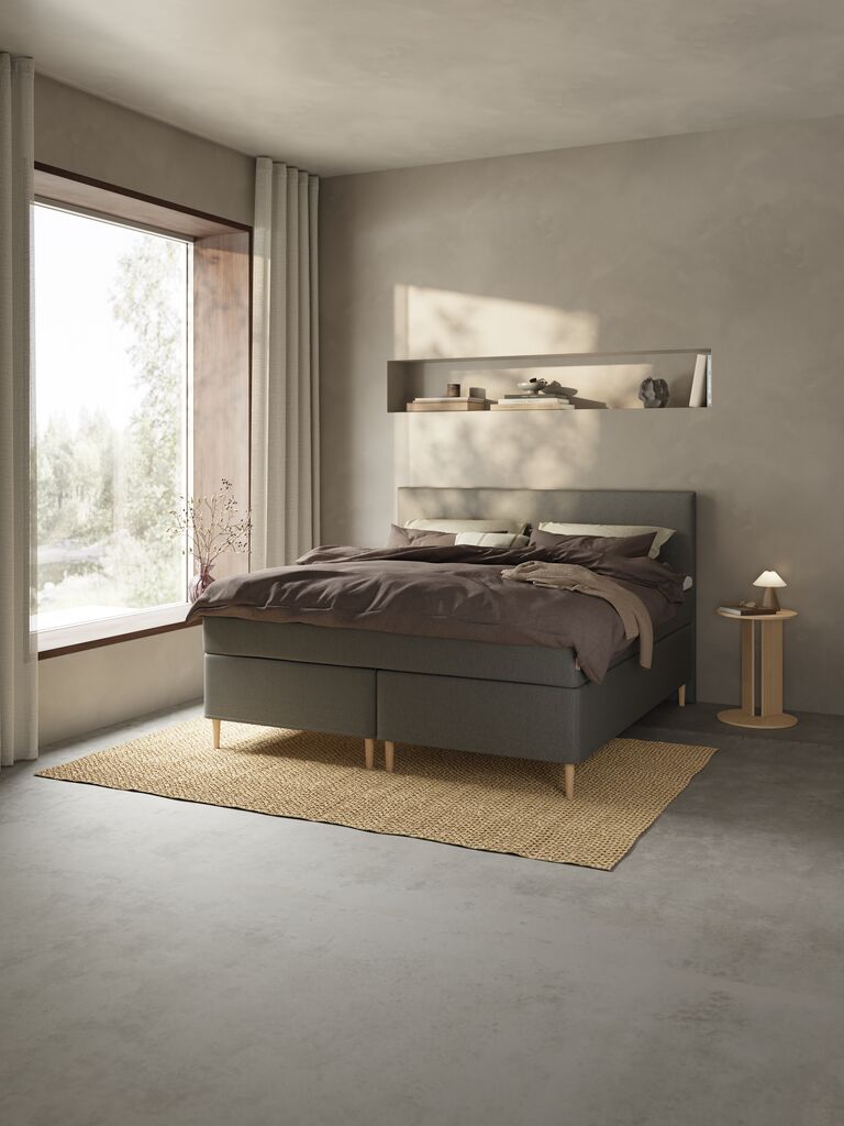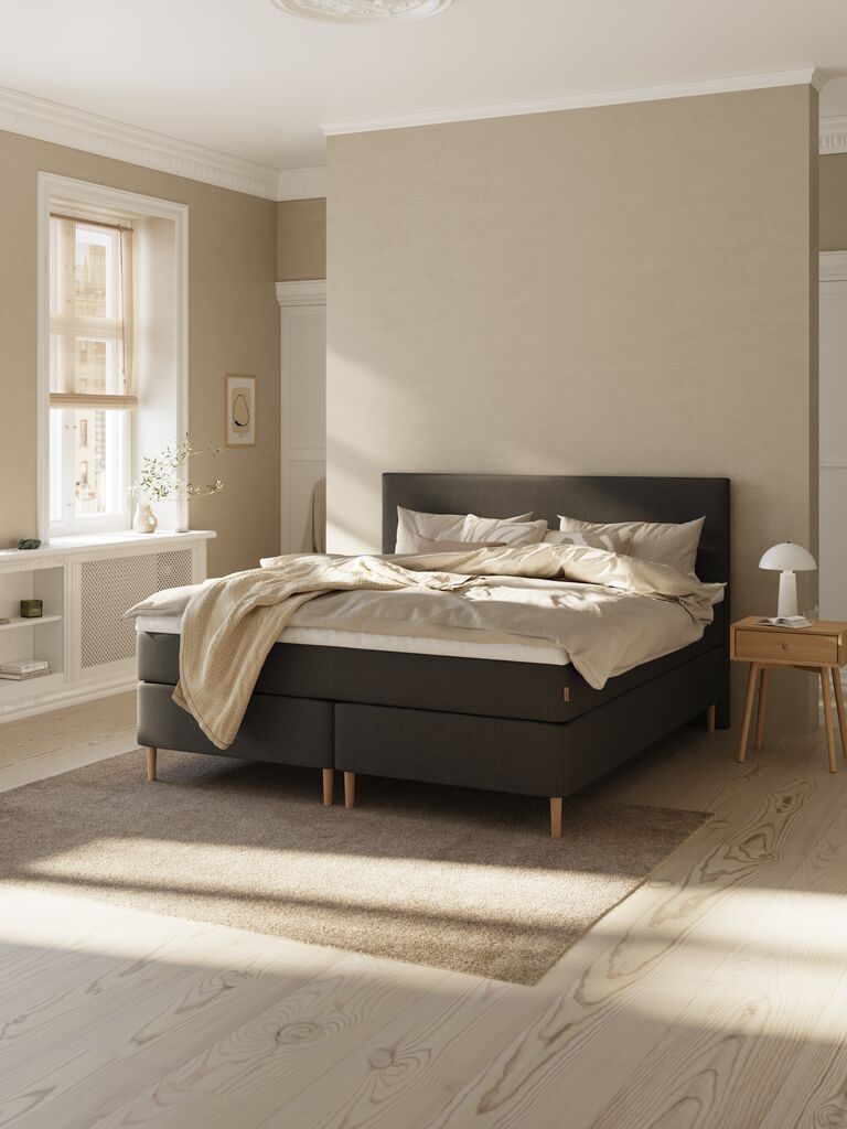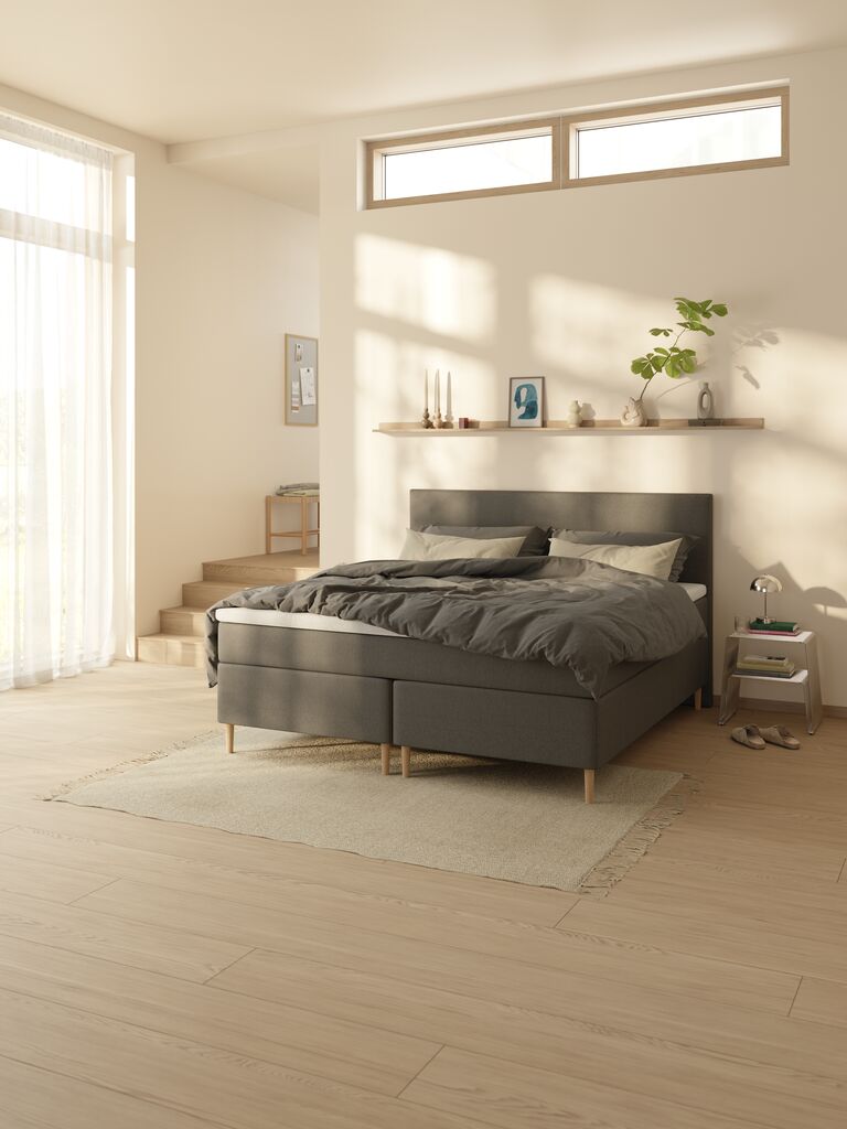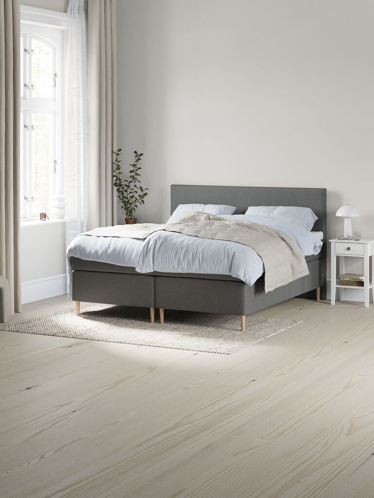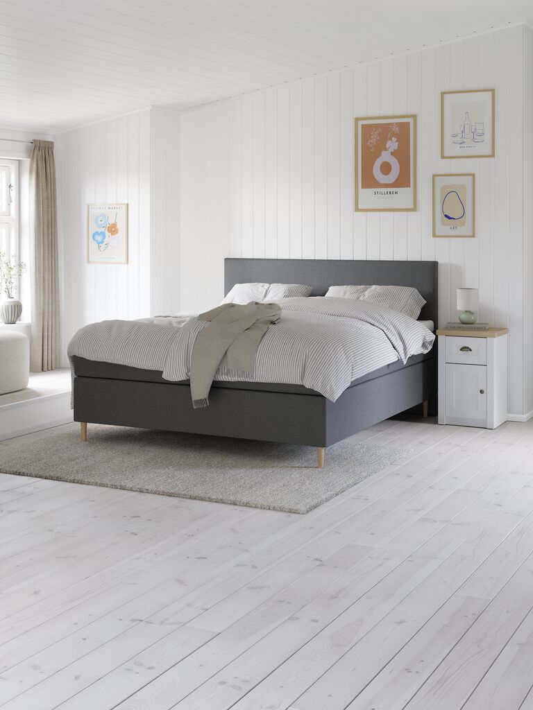 Beställde denna mörkgrå sänggavel istället för en i samma färg som sängen eftersom jag tycker det är snyggt med kontrasten. Den passar väldigt bra och står stadigt med sängen som stabilt stöd.