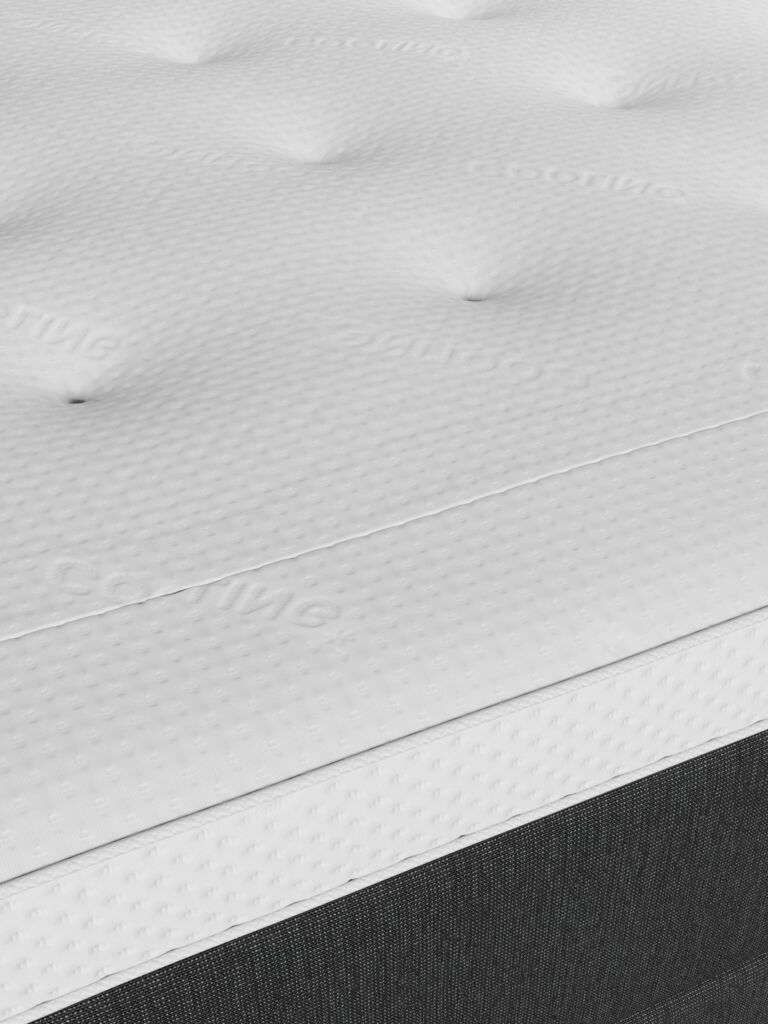 Madrassen er designet for å gi målrettet støtte gjennom sin kombinasjon av komfortsoner og lag. Den er delt inn i 5 komfortsoner og 3 komfortlag, som inkluderer adaptive pocket-fjærer og Comfort+ skum, som hver bidrar til dybde og generell støtte. Adaptive pocket-fjærer har et høyt antall vindinger. Denne utformingen gjør at fjæren kan tilpasse fastheten mer gradvis, for jevn og stabil støtte.
