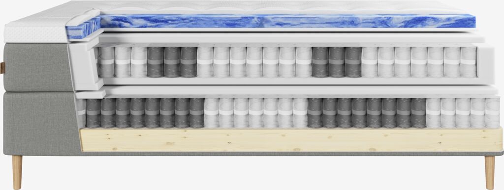 Rammemadrassen gir forbedret stabilitet og støtte for madrassen over. Den inneholder pocket-fjærer og polyeterskum, som bidrar til en mer balansert søvnopplevelse.