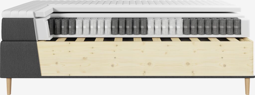 Rammen gir forbedret stabilitet og støtte for madrassen over. Dette bidrar til en mer balansert søvnopplevelse.