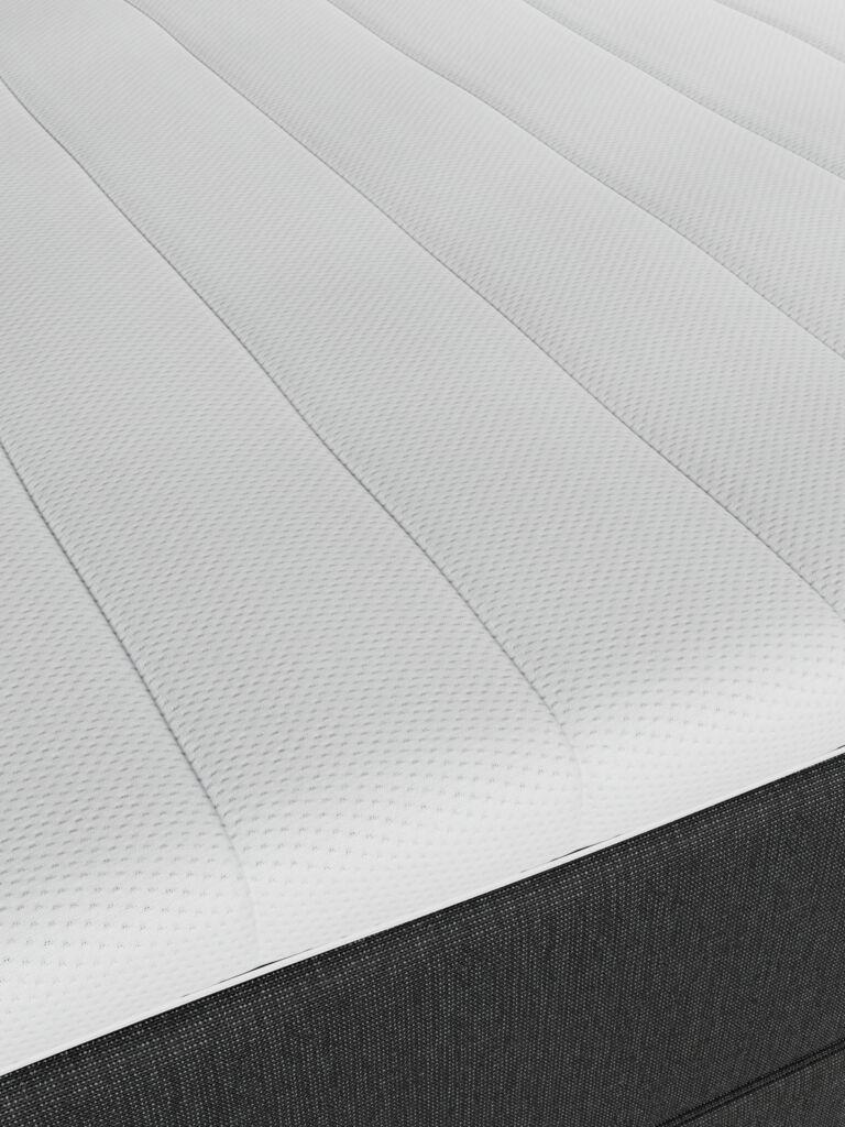 Madrassen er designet for å gi målrettet støtte gjennom sin kombinasjon av komfortsoner og lag. Den er delt inn i 5 komfortsoner og 3 komfortlag, som inkluderer pocke-fjærer og polyeterskum, som hver bidrar til dybde og generell støtte. Hver pocket-fjær er innebygd i sin egen stofflomme og tilpasser seg individuelt til kroppen din. Dette skaper en fleksibel og støttende madrass.