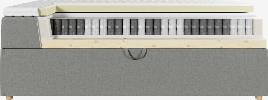 Rammene gir forbedret stabilitet og støtte for madrassen over. De inneholder polyeterskum som bidrar til en mer balansert søvnopplevelse. I tillegg hjelper den integrerte oppbevaringsplassen deg med å optimalisere oppbevaringsplassen på soverommet.