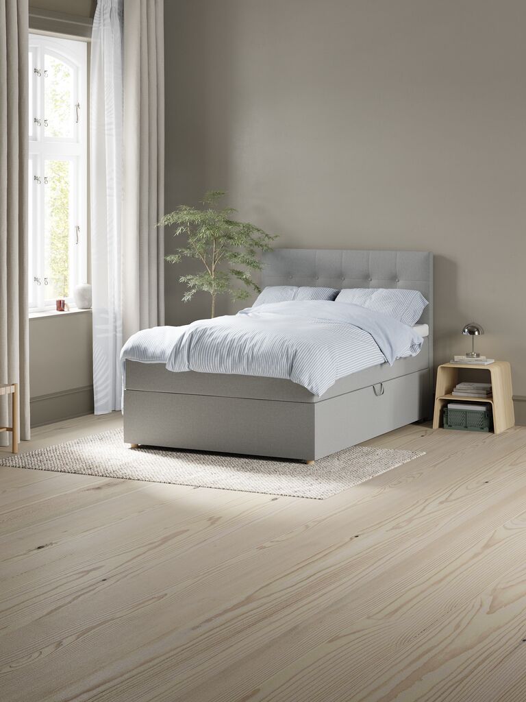 Match sengen din med en sengegavl i samme fargekode, Grå-23, for å skape et helhetlig utseende. En sengegavl gir soverommet ditt et stilig preg og bidrar til å redusere merker på veggen som kan oppstå når man sover tett inntil den.