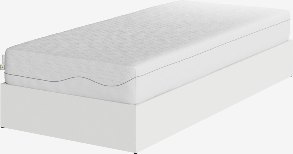 Seng med oppbevaringsrom 90x200 cm og hydraulisk løft. Passer til skum og vendbare madrasser. Madrass og ben kjøpes separat.