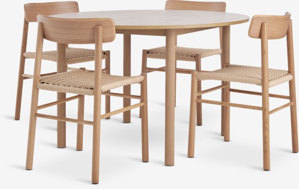 ALSTED Ø120 bord natur eik + 4 ISLEV stol u/armlene eik