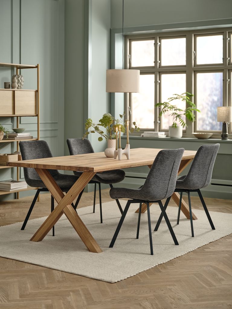 | Materiale | Topp: Massiv eik, Ben: Trefinér består av tynne trelag som limes på en sponplate eller en MDF-plate. Det gir et autentisk og naturlig inntrykk av massivt tre. |