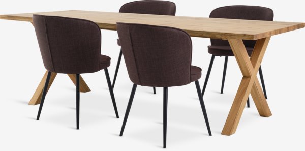 GRIBSKOV + RISSKOVGRIBSKOV L230 bord natur eik + 4 RISSKOV stol mørk brun