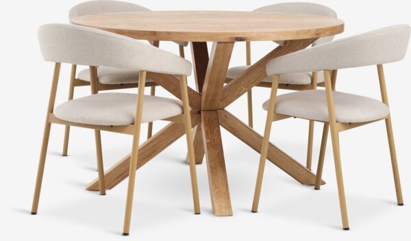 GRIBSKOV + EJSINGGRIBSKOV Ø120 bord natur eik + 4 EJSING stol beige/natur eik